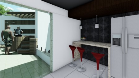 cozinha e suíte foram criadas no segundo piso e a cozinha dá acesso à área de